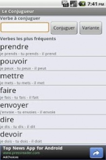par anonymeTres satisfaite ! Facile d'utilisation et l'interface est sympa, le même que sur le site internet. On peux l'utiliser hors ligne et il y a même des cours concernant les règles de la Conjugaison. Jusqu'à présent tous les verbes que je cherchais était dans la liste. Je ne sais pas si il manque quelque chose mais en tout cas, pour l'instant je n'ai pas de réclamation à faire, l'application me semble complète. Merci aux développeurs ! ?